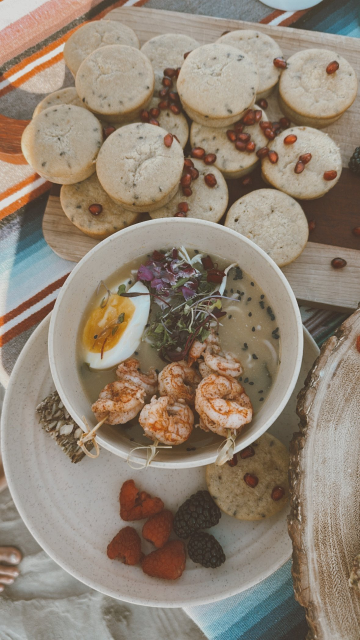 The meal is organic, locally sourced, and deeply intentional — designed to replenish your body and elevate your spirit. We eat together, reflect, laugh, and soak in the sunset.